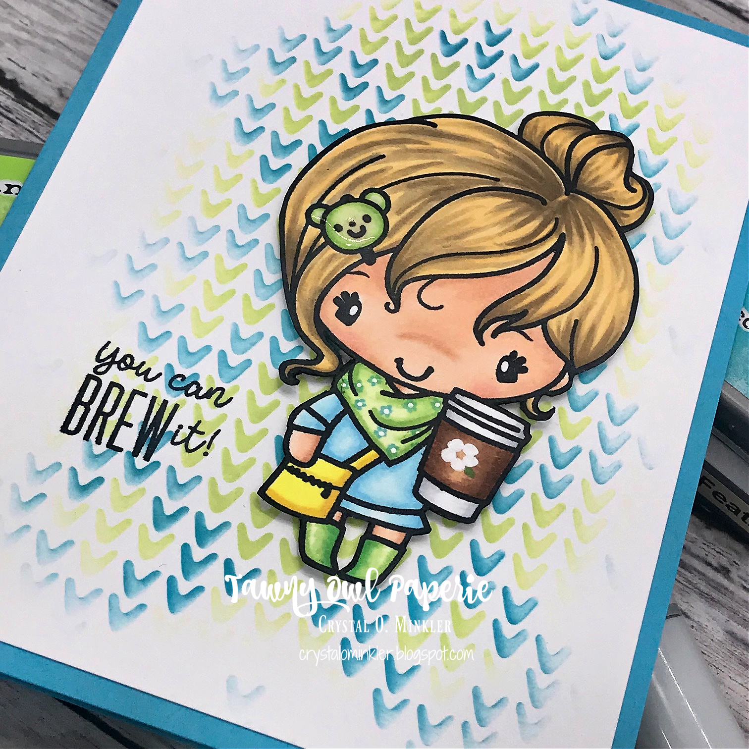 Hello there crafty friend! I'm Crystal Minkler and I am super excited and honored to be guest designing for The Greeting Farm for the month of September!! I have a few fun projects to share with you all this month... starting with an adorable CAS card I created using the beautiful Brew It Anya stamp! She just may be my first ever stamp set from The Greeting Farm. I love this stamp so much... it's definitely a fave!