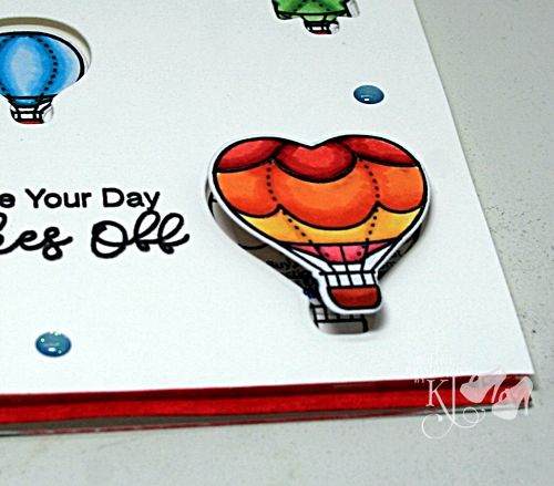 This stamp set is called UP and is available for purchase HERE. As you can see all images were die cut with the matching dies, then the image was set inside of the die cut. The largest balloon was treated the same way except raised on an action wobbler.