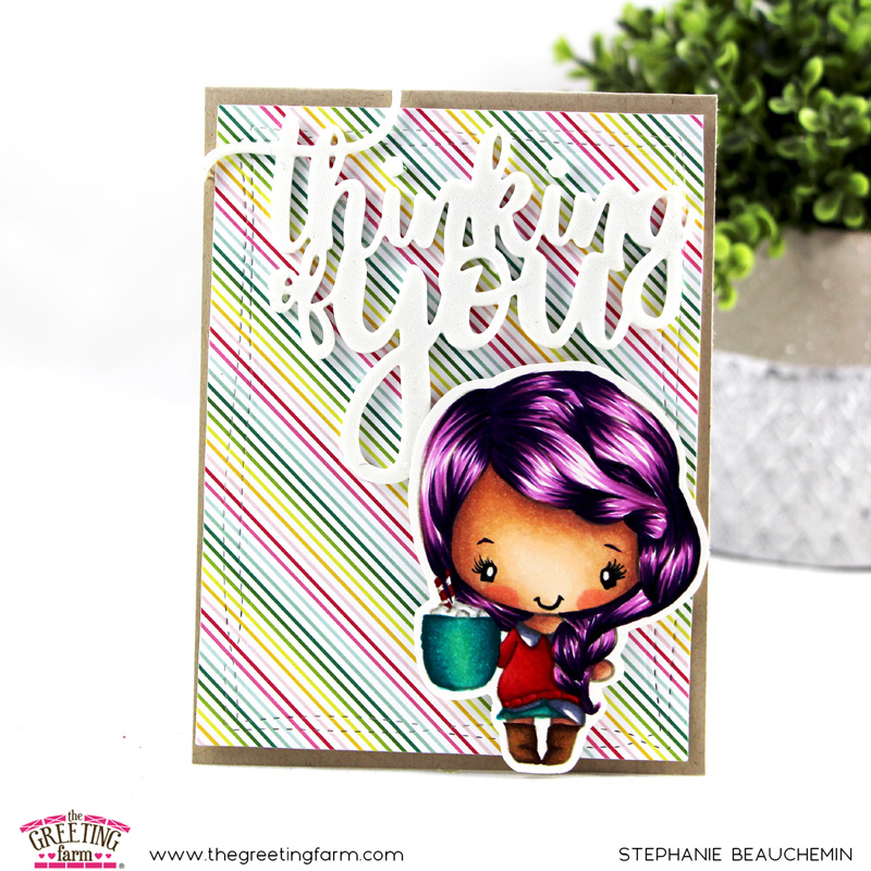 To start the year right, I thought I'd create a card with one of my favorite stamps from The Greeting Farm, called Holiday Anya 6. She was stamped in some pale ink, to create a no-line coloring look when I added color with alcohol markers.